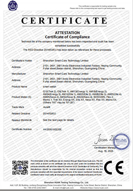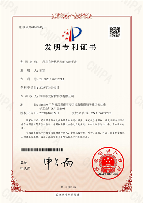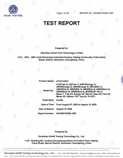 产品专利证书 我们持续投入研发与技术创新,已获得多项产品专利和软件著作权,涵盖智能穿戴的核心技术领域。通过不断突破与优化, 我们确保每一款产品都具备领先的技术实力与卓越的用户体验。产品认证报告 我们确保产品设计、制造和质量管理符合全球标准。产品已获得多项国际认证, 为全球市场提供安全、可靠且高品质的智能穿戴设备。宣传营销支持 我们为每一款产品提供完整的宣传素材,包括产品渲染图、详情页图片以及产品视频等, 帮助合作伙伴更高效地进行产品展示与市场推广。产品渲染图详情图视频包装物料支持我们为合作伙伴提供完整的包装与物料支持,包括包装设计、说明书等包装资料, 助力品牌快速推广与市场销售。